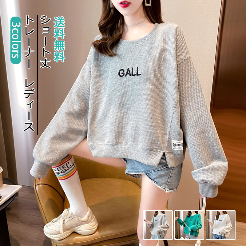 トレーナー レディース 着痩せ 長袖 へそ出し ショート丈 スウェット プルオーバー ロゴ 英字 ゆったり パーカー トップス アウター 秋 おしゃれ きれいめ 大きいサイズ 部屋着 ルームウェア カ