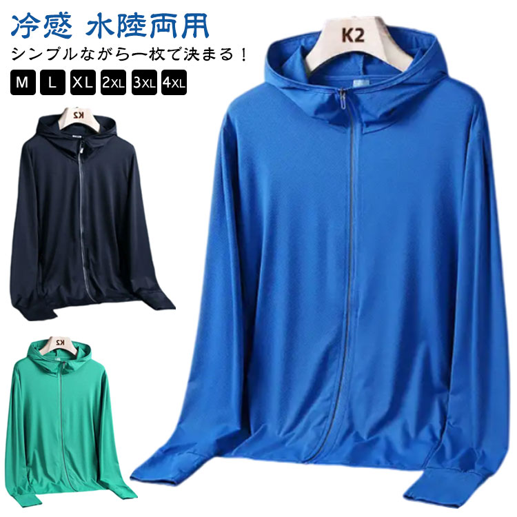 夏用 冷感 ひんやり 涼しい 接触冷感 パーカー フード付き ジャケット 軽量 ラッシュパーカー 長袖 アウター 通気性