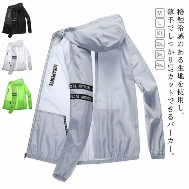 夏用 冷感 ひんやり 涼しい 接触冷感 UVパーカー フード付き ジャケット 軽量 ラッシュパーカー 長袖 アウター 通気性