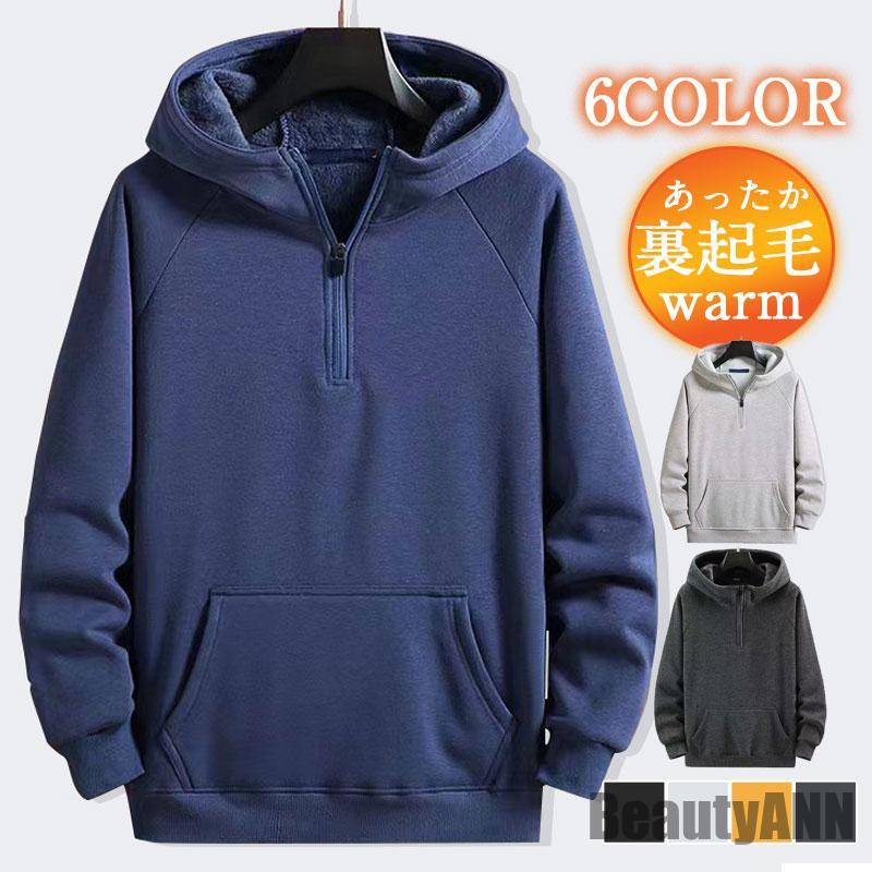 暖かい トップス メンズ パーカー シンプル 裏起毛 長袖 厚手 防寒 あったかメンズファッション トップス パーカー