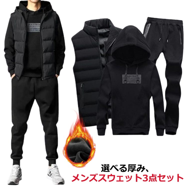 ベスト+パーカー+パンツ3点セット 暖かい 選べる裏起毛 ~3メンズファッション トップス スウェット トレーナー