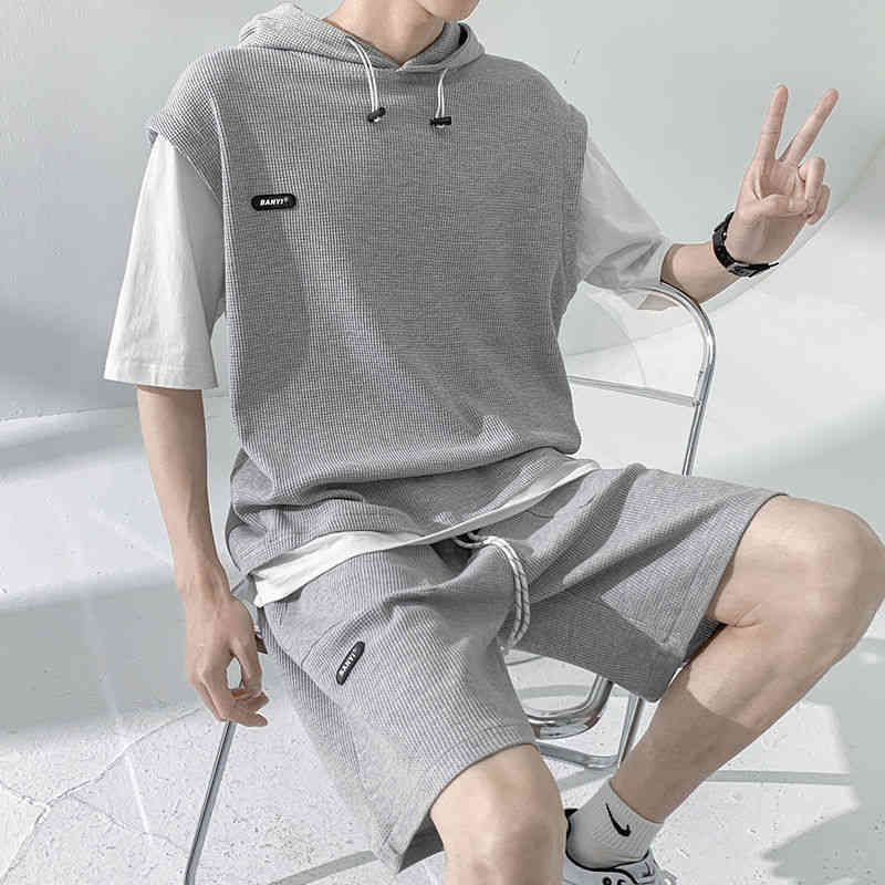 半袖 パーカー メンズ 接触冷感 レイヤード風 フード付きtシャツ プルオーバーパーカー 薄手 半袖パーカー 夏 韓国ファッション 涼しい
