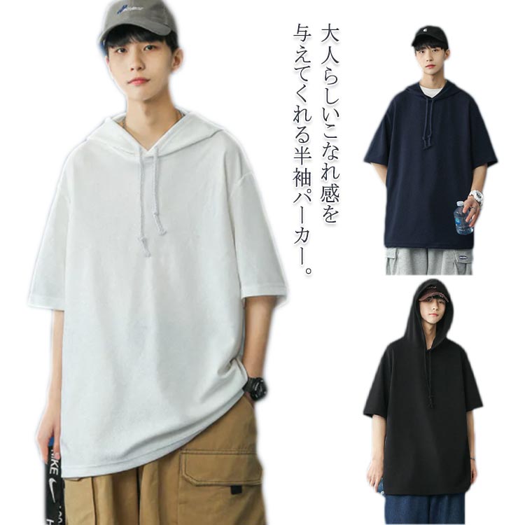 半袖 パーカー メンズ ビッグシルエット 薄手 tシャツメンズファッション トップス パーカー