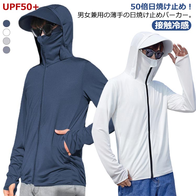 メンズ 日焼け止めパーカー レディース ラッシュガード 接触冷感 夏 薄手 無地 長袖 ジップアップ メンズ