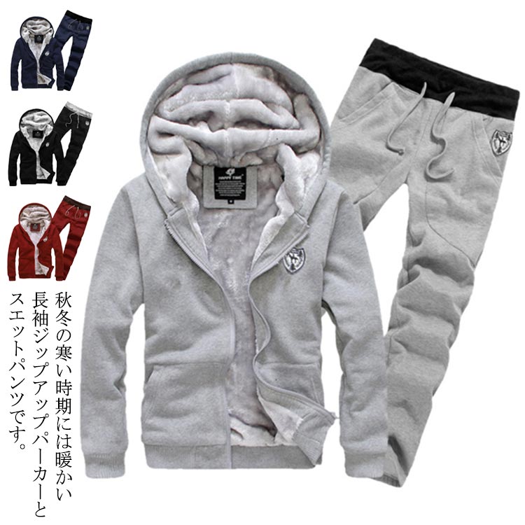 メンズ セットアップ 厚手 ジャージ 裏ボア 上下セット 裏起毛 パーカー ジップアップ スウェット セットアップ スポーツウェア 防寒 秋冬