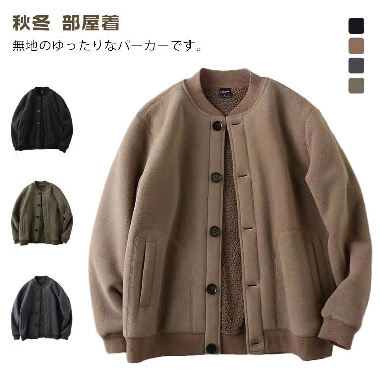 無地 前開き 保暖 おしゃれ ポケット付き 長袖 大きいサイズ ボタン留め カーディガン 秋冬 部屋着 トップス M L XL 2XL 3XL スタジアムジャンパー