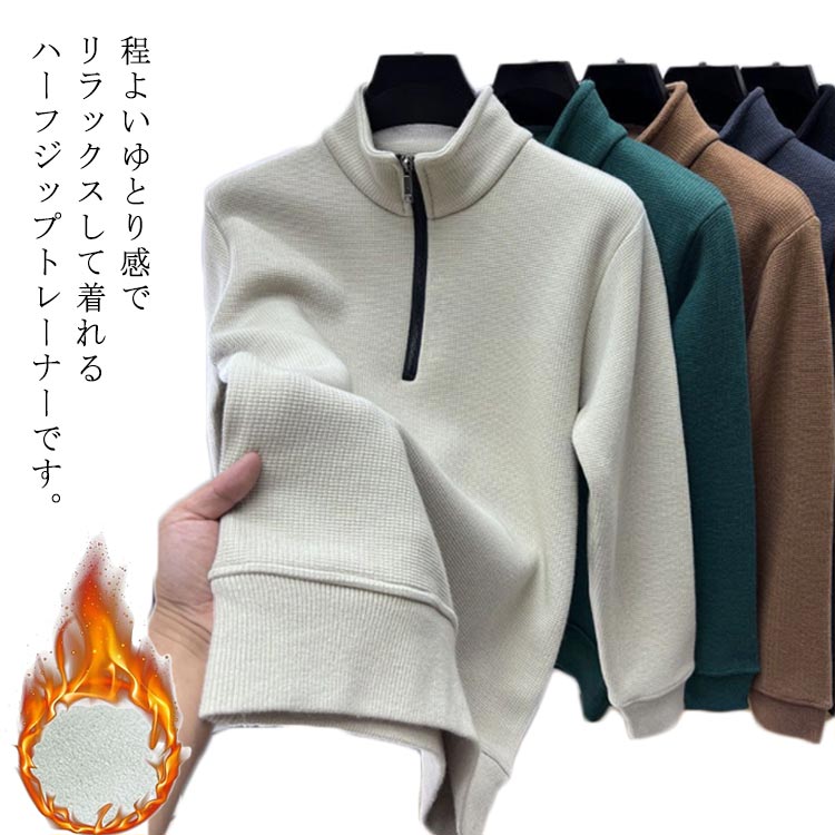 トレーナー 無地 ハーフZIP 立ち襟 カジュアル シンプル メンズ 秋服 ハーフジップ 長袖 トップス 大きいサイズ 秋冬 裏起毛 長袖