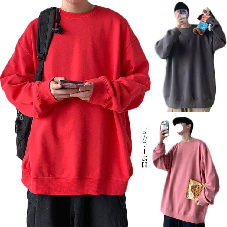韓国 ファッション メンズ トレーナー ビッグシルエット オーバーサイズ 無地 長袖メンズファッション トップス パーカー