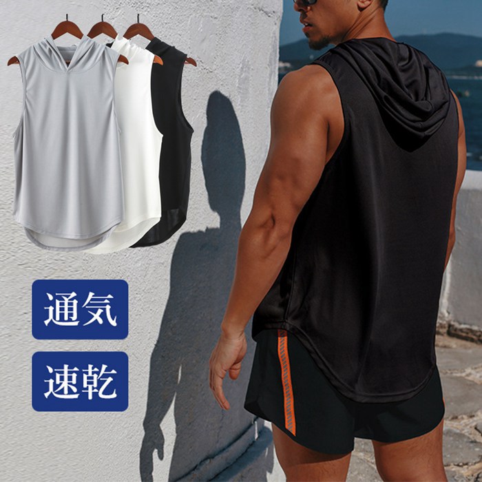 パーカー メンズ ノースリーブ 速乾 タンクトップ ノースリーブパーカー フード付き スポーツ 通気 おしゃれ 夏