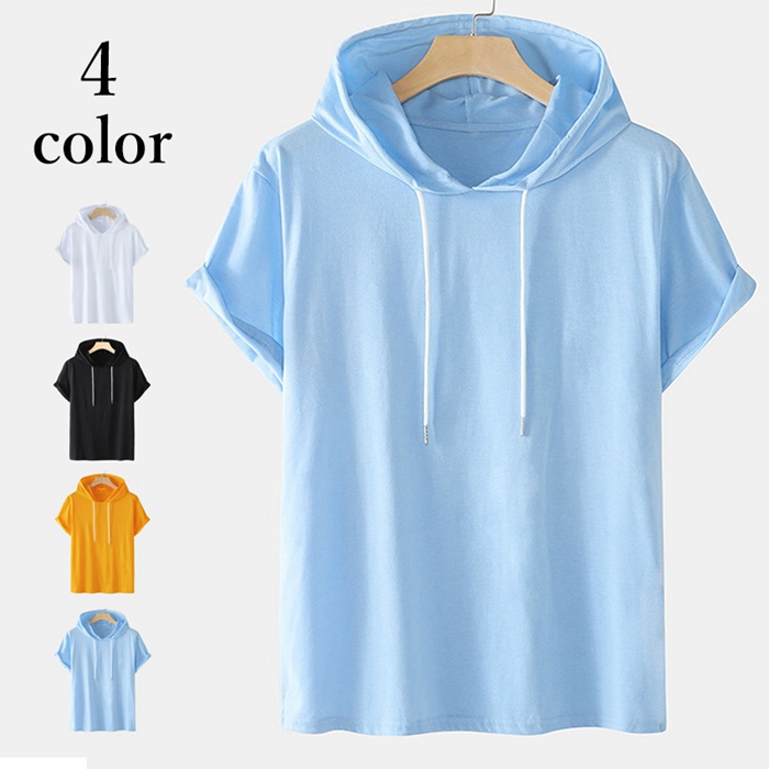 パーカー メンズ 半袖 春 夏 プルオーバーパーカー フード付き 無地 トップス 薄手 シンプル カジュアル 通学 運動 ファッション