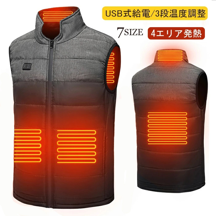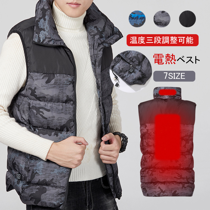 寒い冬でもぽかぽかできる ヒーター内蔵電熱ベスト ダウンベスト 式給電 電熱ジャケットメンズファッション トップス ベスト ジレ