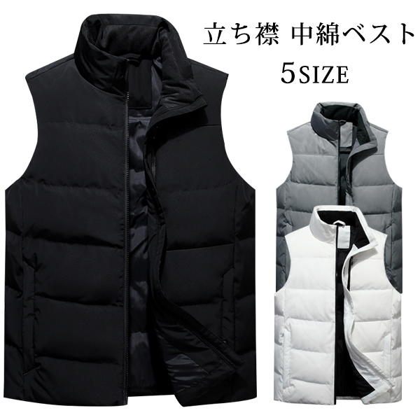 ダウン中綿ベスト メンズ ベスト スタンドカラー 中綿ベスト 中綿ジャケット コート ベスト トップ ス ショート丈 無地 厚手