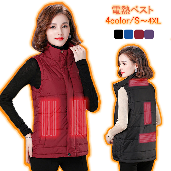 寒い冬でもぽかぽかできる ヒーター内蔵電熱ベスト ダウンベスト ステンカラー USB式給電 電熱ジャケット