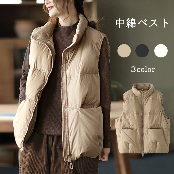中綿ベスト レディース ベスト スタンドカラー 中綿ベスト 中綿ジャケット コート ベスト トップ ス ショート丈 無地 厚手