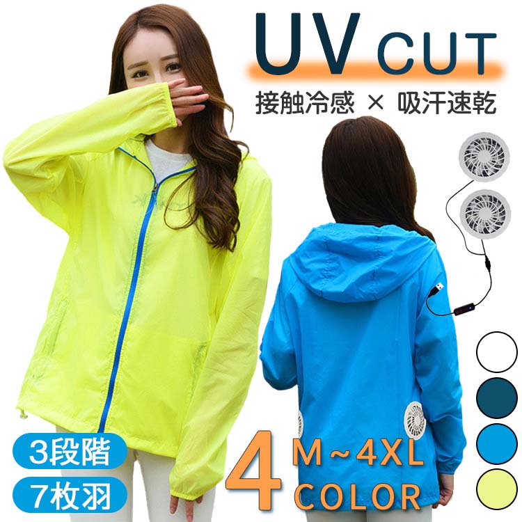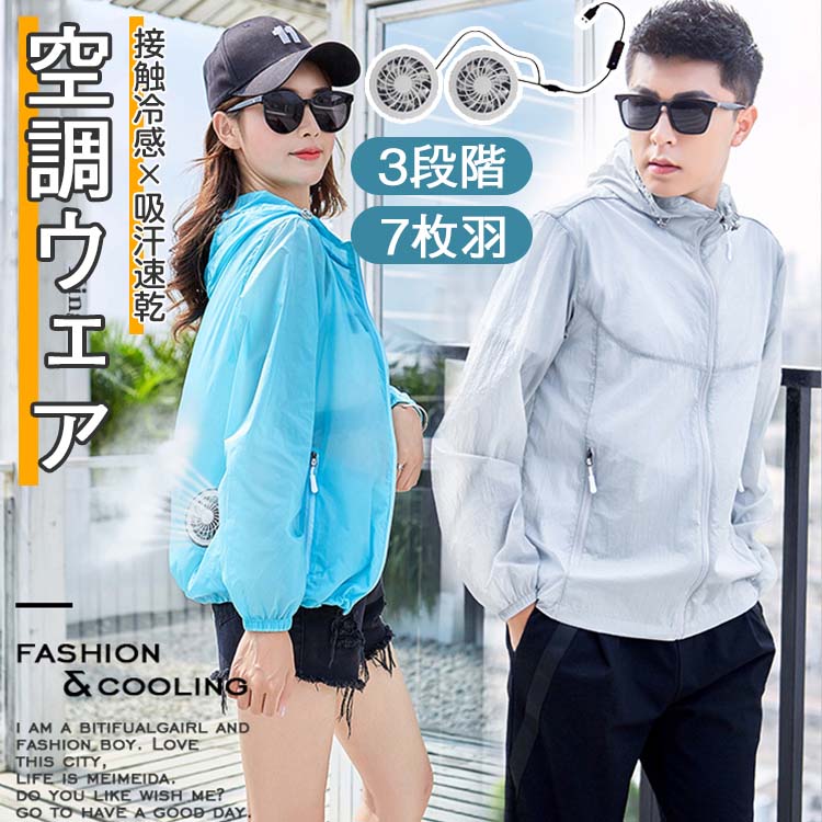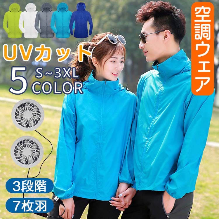 uvカット パーカー レディース 冷感 空調作業服 男女兼用 服のみ 涼しい UVカット服 ユニセックス レディースパーカー ファン内蔵 扇風機 3段階 7枚羽 風力調節 作業服 メンズ 清涼服