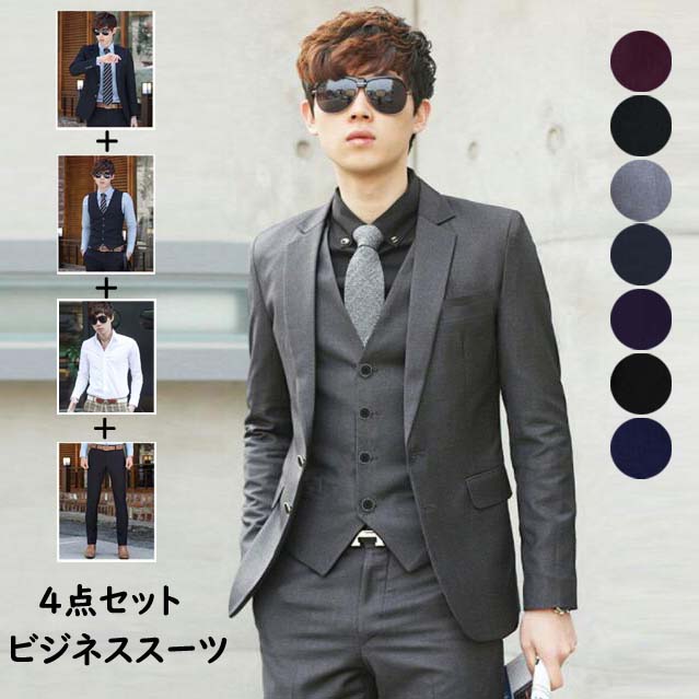 高品質 4 メンズスーツ ジャケット+ベスト+パンツ セレモニースーツ スリムスーツ スリーピース セレモニースーツ スリムスーツ カジュアルスーツ 細身スーツ 大きいサイズ 5まで