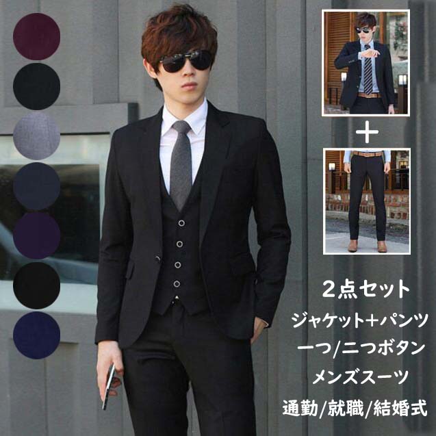 メンズ スーツ シングルスーツ 新郎 息子 披露宴 誕生日 司会 忘年会 新生活 紳士服 ビジネス スリムスーツ 仕事スーツ 事務服 会社 セットアップ パンツスーツ カジュアル 冠婚葬祭
