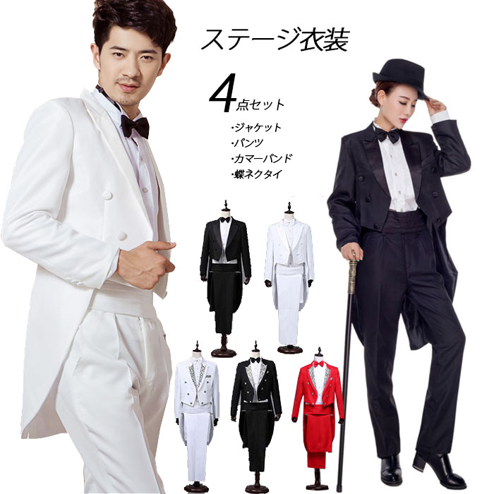 ステージ衣装 メンズ スーツ カラースーツ ジャケット+パンツ 上下2点セット 忘年会 新年会 ステージ衣装 ダンス衣装 カラオケ衣装 舞台衣装 レッド ブラック ブルー ホワイト