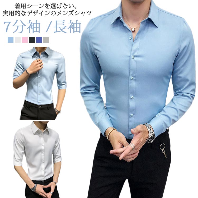 シャツ 白シャツ カジュアルシャツ 長袖 就活 無地 ブラック ピンク ネイビー 動きやすいストレッチワイシャツ