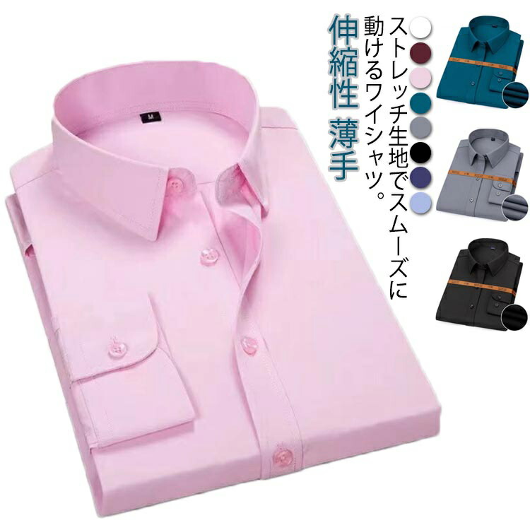 Yシャツ 白シャツ カジュアルシャツ 長袖 就活 無地 ブラック ピンク ネイビー 動きやすいストレッチワイシャツ