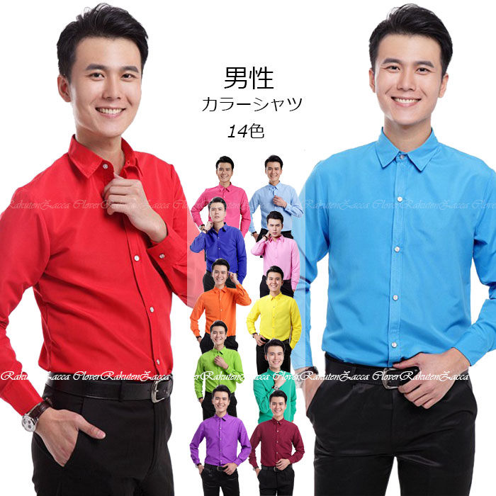 カラーシャツ 長袖 メンズ ドレスシャツ 男性用 細身 スリム ダンス衣装 ステージ 舞台衣裳 無地 イベント パーティー 発表会 舞台 社交ダンス 衣装 ハロウィン 仮装 衣装 新年会 忘年会 余興