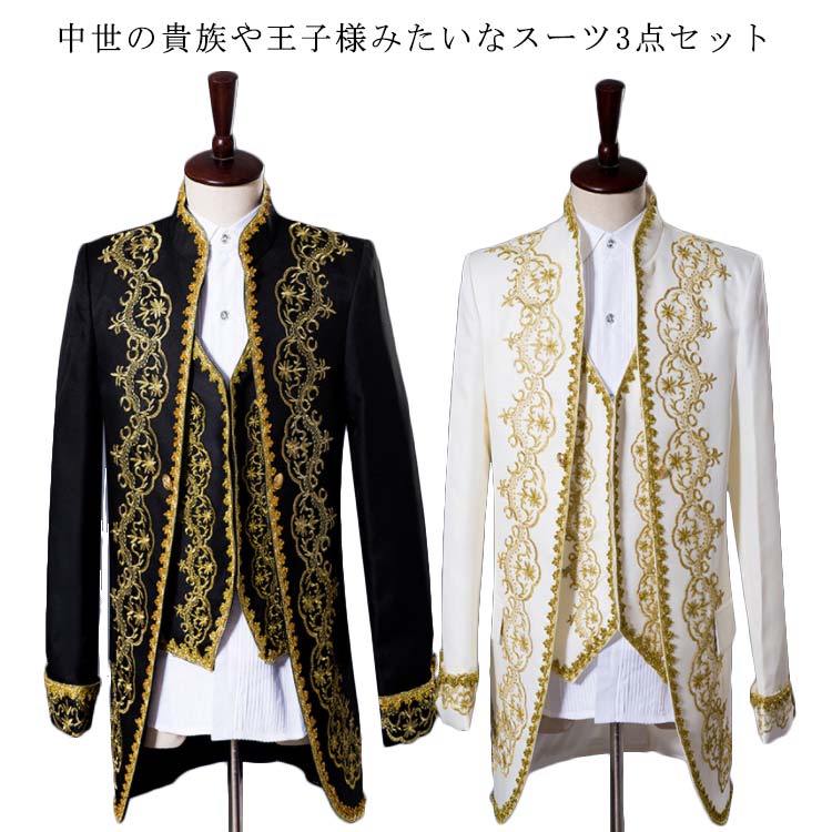 大人用コスチューム 3点セット ステージ スーツ コスプレ衣装 メンズスーツ 貴族風タキシード ゴシック ジャケット ベスト 貴族 ヨーロッパ王族服 衣装 中世の貴族や王子様みたい メンズスーツ ズボ