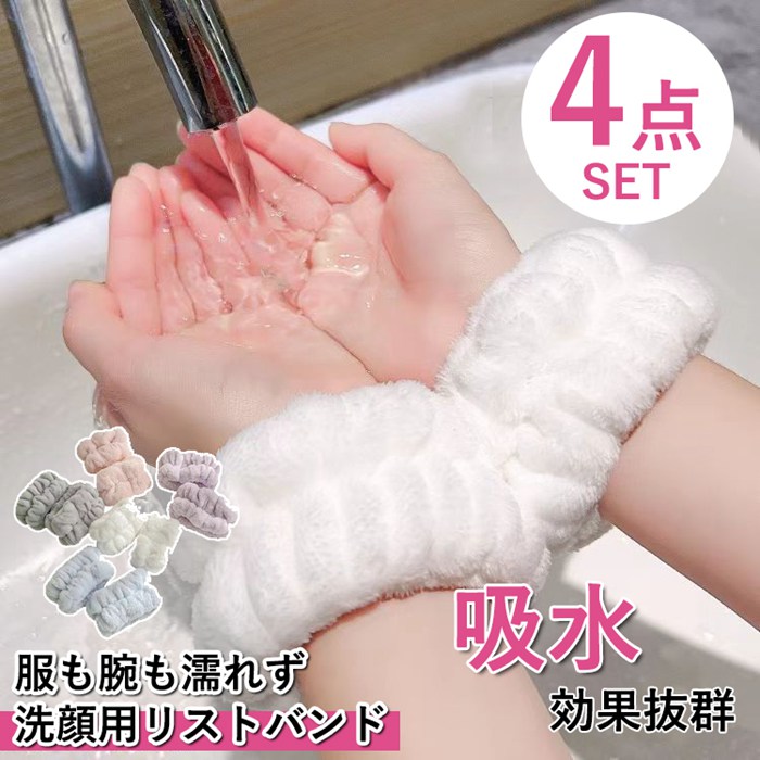 洗顔用 水濡れ防止バンド リストバンド かわいい 吸水 速乾 洗顔 風呂で快適に使える 洗顔 腕ひじ