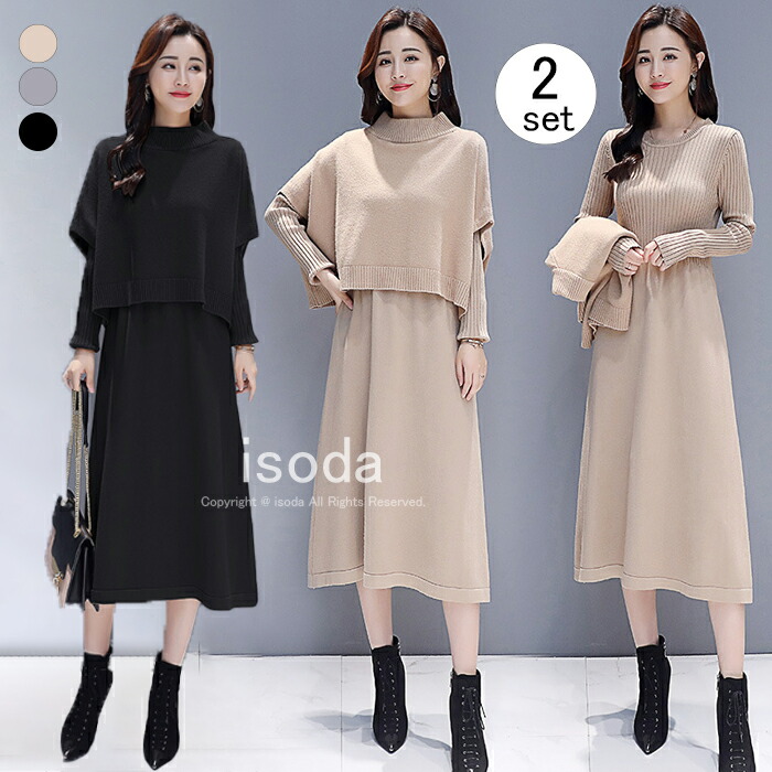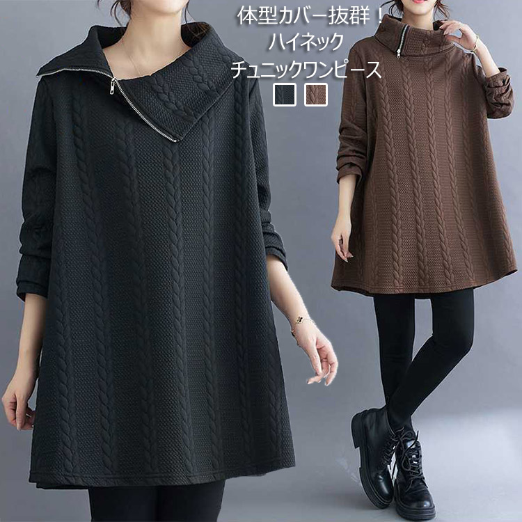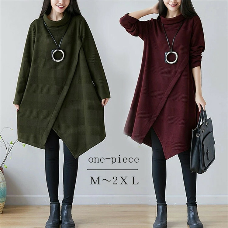 ワンピース レディース ニットワンピス 長袖チュニック 秋冬 膝丈 ハイネック 秋冬 織物レディースファッション ワンピース