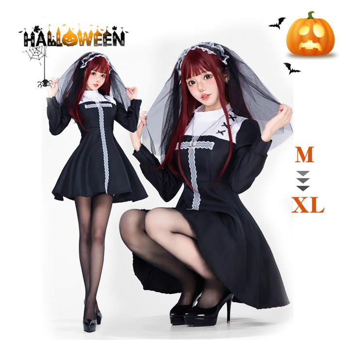 仮装舞踏会 女性用 ワンピース ゴシック風 鬼花嫁姿 ダーク風シスター魔女 吸血鬼 ハロウィン衣装 パーティー イベント コスチューム 学園祭353005