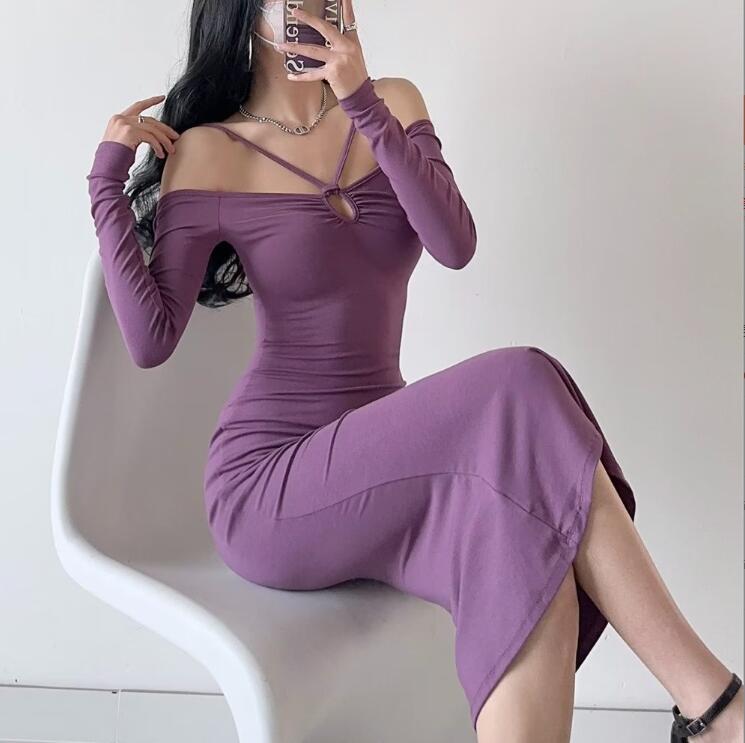 タイトワンピース セクシーワンピース ロング丈ワンピース 無地 フェミニン お出かけ 女性 通勤 二次会 おしゃれ
