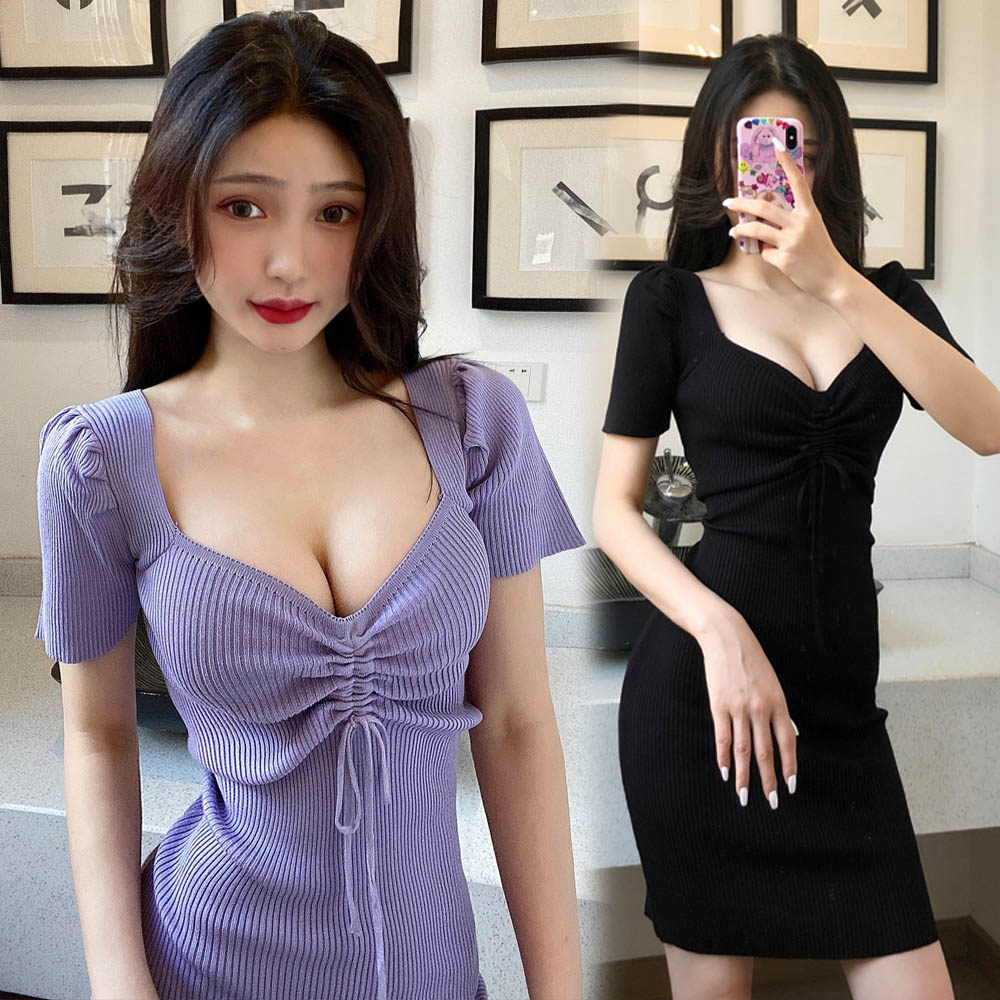 Tシャツワンピース Vネック カシュクール ボディコンワンピ タイトワンピース セクシーレディースファッション ワンピース