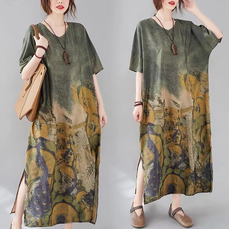 ロングワンピース レディース 夏 ゆったり 半袖 カジュアル 薄手 通勤 可愛い 大きいサイズ 035