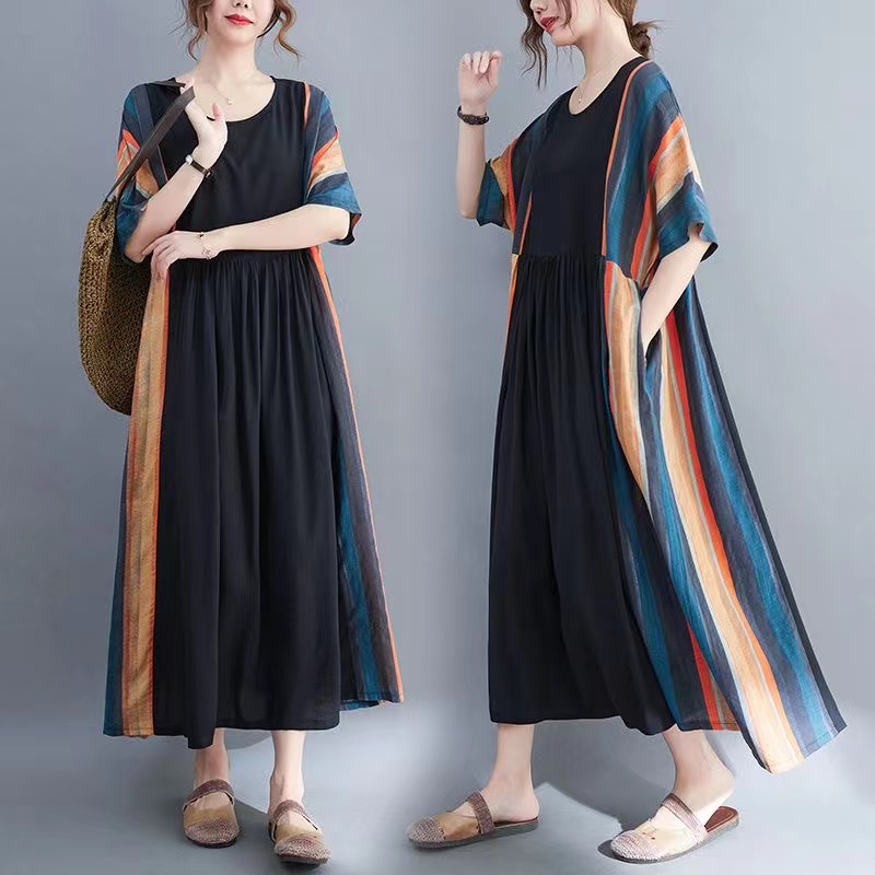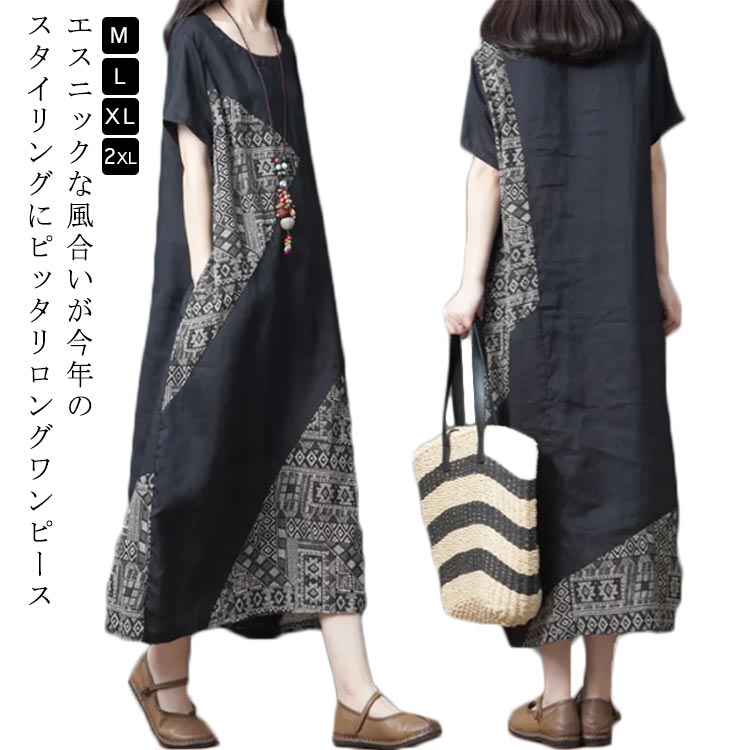 ロングワンピース レディース 夏 ゆったり 半袖 カジュアル 薄手 通勤 可愛い 大きいサイズ SLWB035