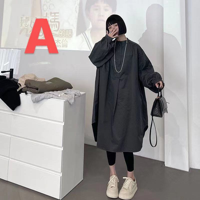 レディース シャツワンピース 春秋 ロング ゆったり 無地 シンプル 可愛い 長袖 大きいサイズ 252
