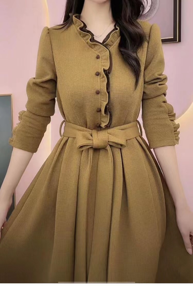 レディース ロングワンピース ゆったり 春秋 ベルト付き 通勤 可愛い 大きいサイズ 長袖 230