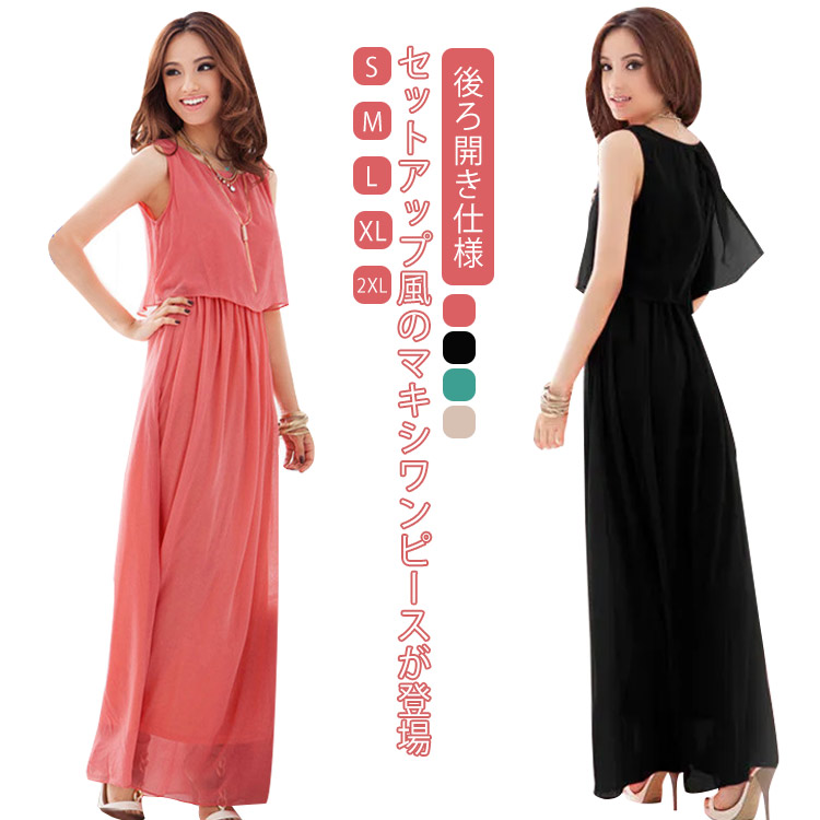 リゾート S~2XL マキシワンピース S~2XL かわいい ふんわりレディースファッション ワンピース