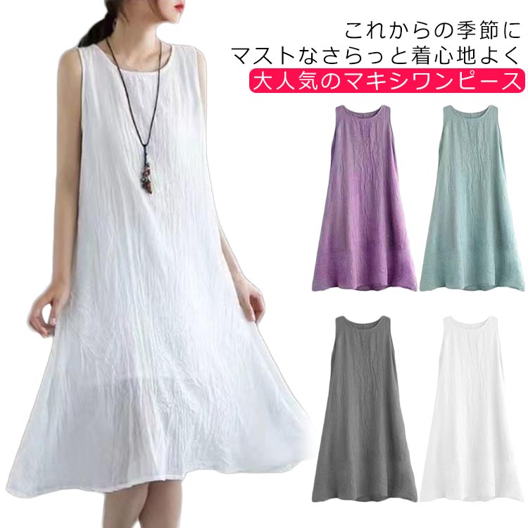 タンクワンピース 大きいサイズ Aライン ロングワンピース 綿 春夏 キャミワンピ 薄手 マキシワンピース 無地 マキシ丈 カジュアル 夏ワンピース 夏ワンピ おしゃれ ノースリーブ ナチュラル レデ