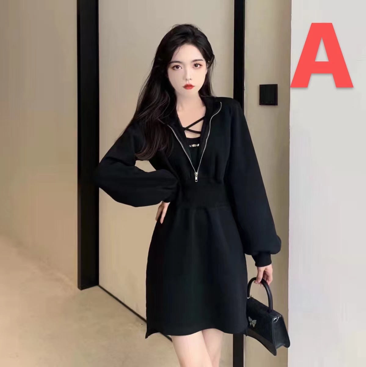 黒ワンピース レディース ドレス 大きいサイズ 長袖 きれいめ aラインレディースファッション ワンピース