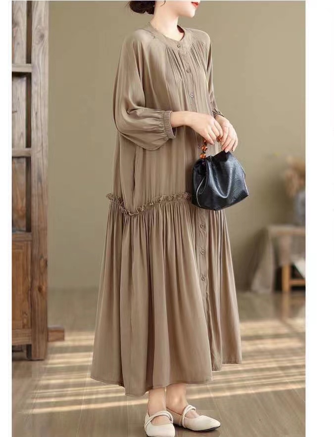 マキシワンピース レディース 長袖 大きいサイズ シャツワンピース 春 秋レディースファッション ワンピース