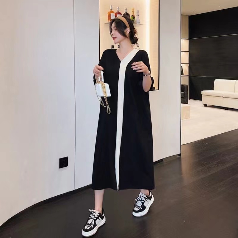 ロングワンピース レディース 半袖 大きいサイズ 夏 無地 シンプル vネックレディースファッション ワンピース