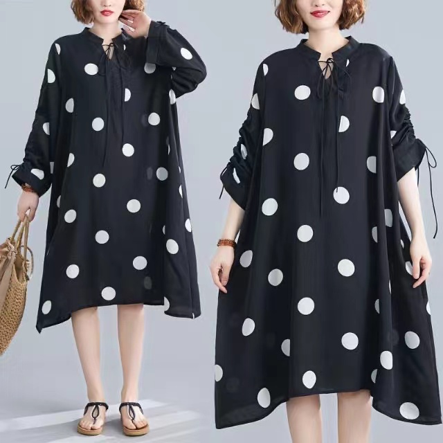ワンピース 半袖 薄手 ドット柄 大きいサイズ 体型カバー ゆったり リラックスレディースファッション ワンピース