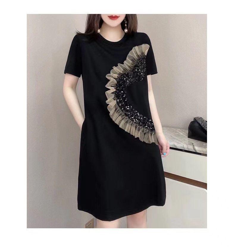 切り替えワンピース レディース フリル 半袖 大きいサイズ 夏 無地 チュニックレディースファッション ワンピース