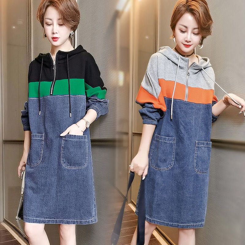 デニムワンピース ワンピス デニムワンピース ワンピ 大人 トップス 体型カバー フード付き Aライン デニム切替スカート カジュアル 春秋 長袖 薄手 大きいサイズ ゆったりL XL 2XL 3XL