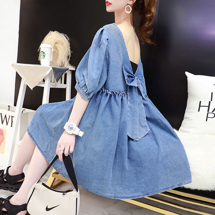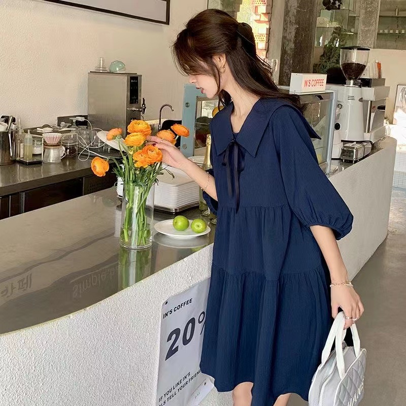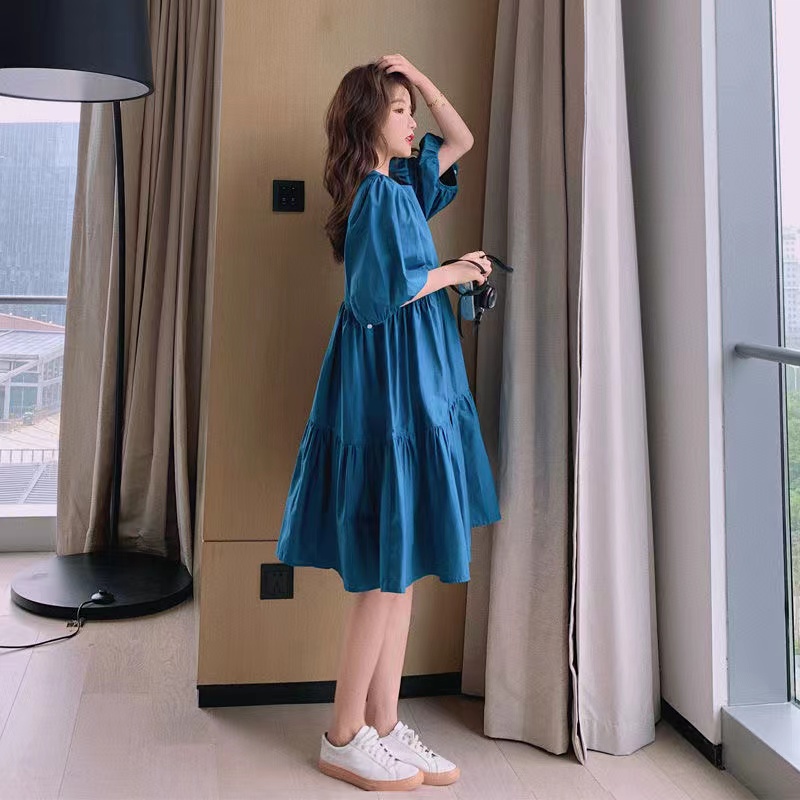 ワンピース レディース 夏 ゆったり 可愛い 薄手 丸首 無地 カジュアル ブルー ホワイト 2 050