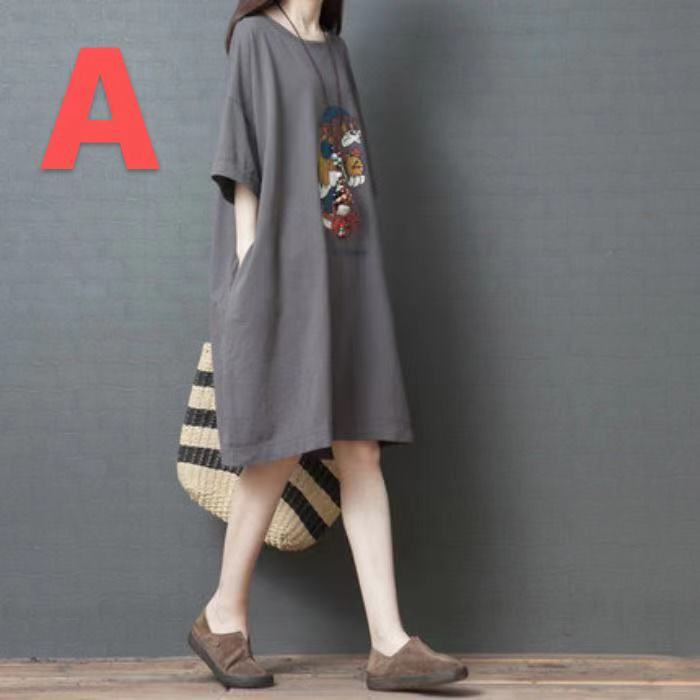 レディース Tシャツワンピース 夏 プリント 丸首 半袖 大きいサイズレディースファッション ワンピース