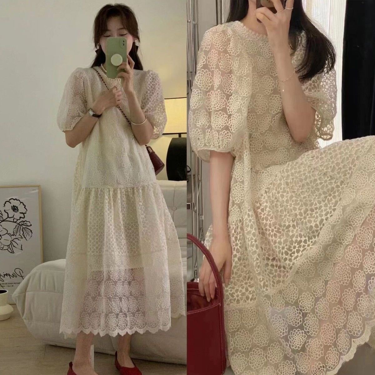 レースワンピース レディース ロング 夏 半袖ワンピース 花柄レース ワンピースレディースファッション ワンピース