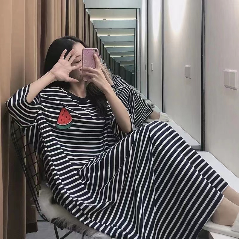 ロングワンピ 夏 半袖 レディース シャツワンピース ライン 花柄 ゆったりレディースファッション ワンピース