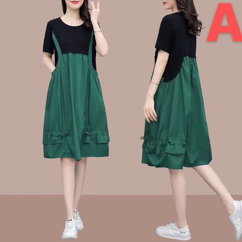 レディース Tシャツワンピース 重ね着風 カジュアル 夏 ゆったり 半袖 大きいサイズ 可愛いレディースファッション ワンピース