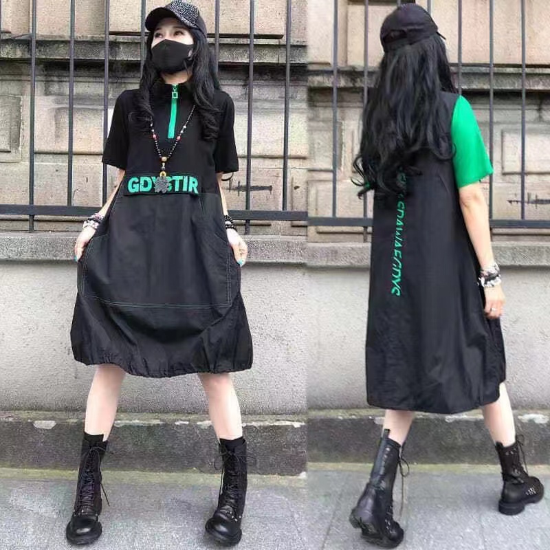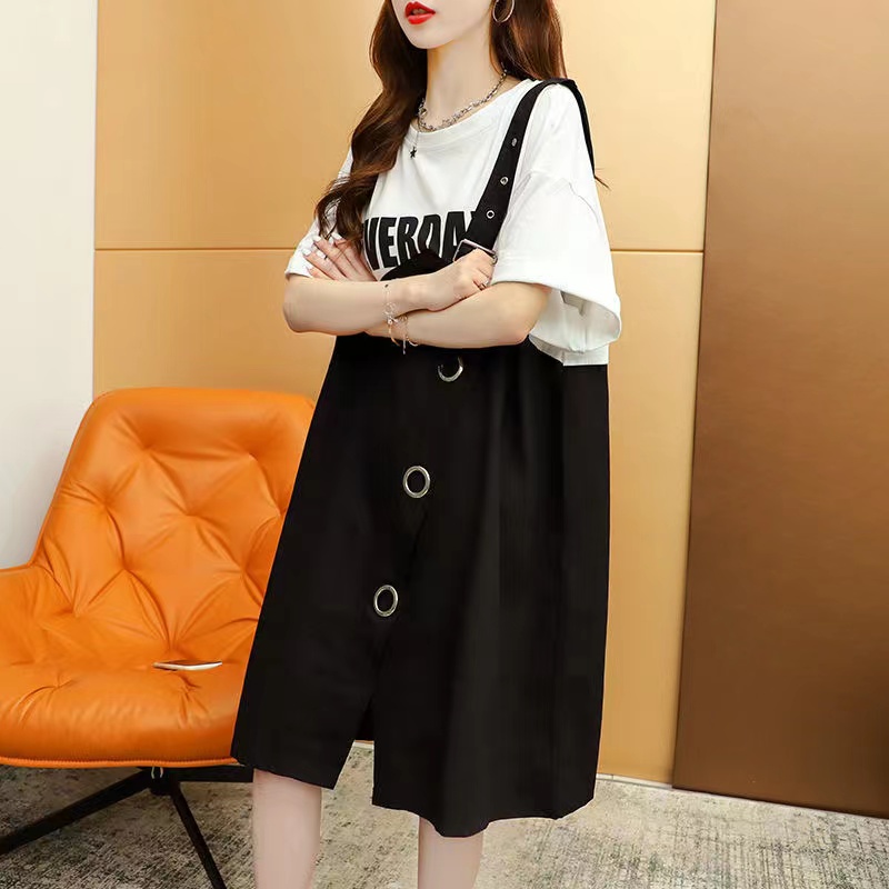 Tシャツワンピース レディース 夏 ゆったり 英文字 カジュアル 重ね着風 半袖 可愛い 丸首 薄手 ホワイト ブラック M L XL 2XL SLWA058
