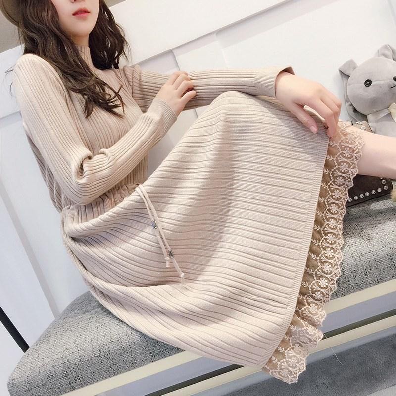 レディース ニットワンピース 秋冬 チュール付き 韓国風 長袖 カジュアル ゆったり 大きいサイズLWDA060